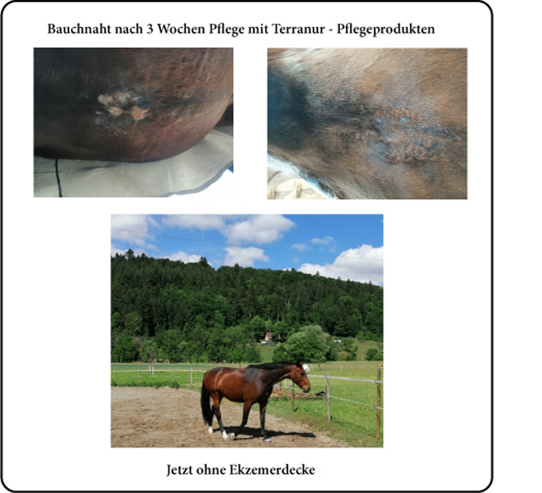 ich habe vor 6 Wochen eigentlich durch Zufall von den Feldversuchen der Fa. Terranur im Internet gelesen. Ich bin ein verzweifelter Sommerekzem-Besitzer, deshalb hat mich dieser Artikel sehr interessiert. Da ich mich seit 7 Jahren jeden Sommer aufs Neue mit dem Ekzem beschäftige und auch gefühlt schon “ALLES” ausprobiert habe, habe ich beschlossen...auf einen Versuch mehr oder weniger kommt es auch nicht an! Und ich muss sagen: Ich bin froh, dass ich diese Entscheidung getroffen habe!!!