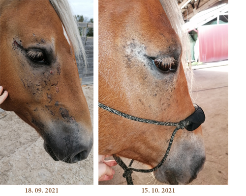 Dieses Jahr war das Gesicht so schlimm betroffen, dass mir jedes Mal die Tränen kamen, wenn ich mein Pony versorgt habe.